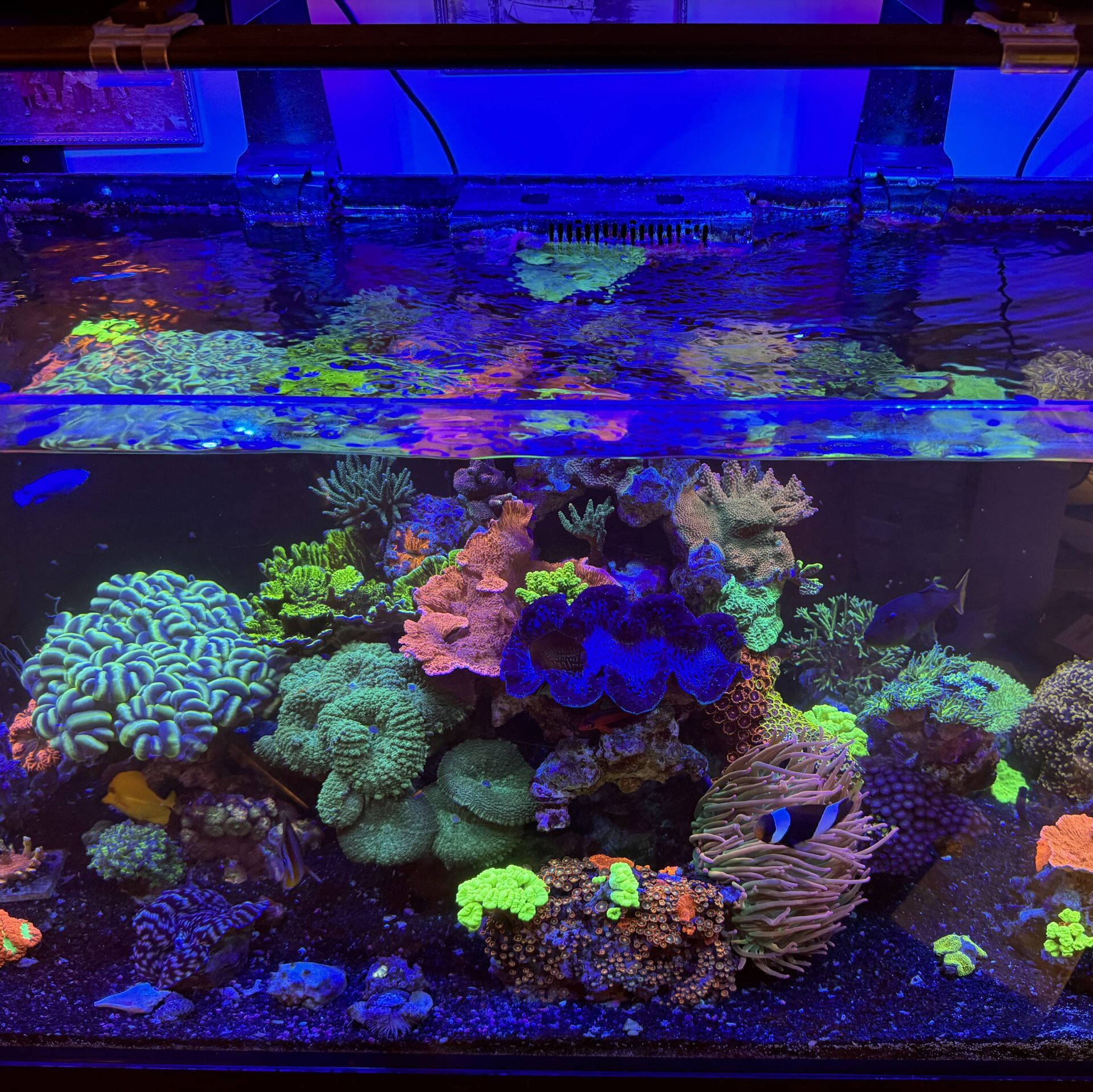 LPS and soft coral tank with ghost overflow and 5 gallon sump
